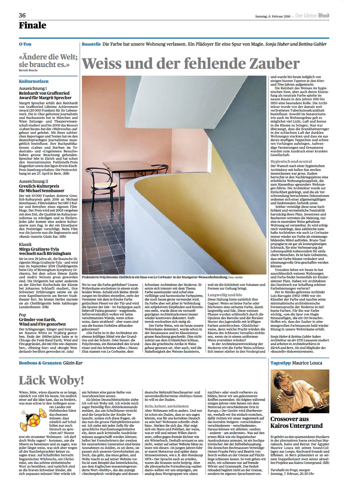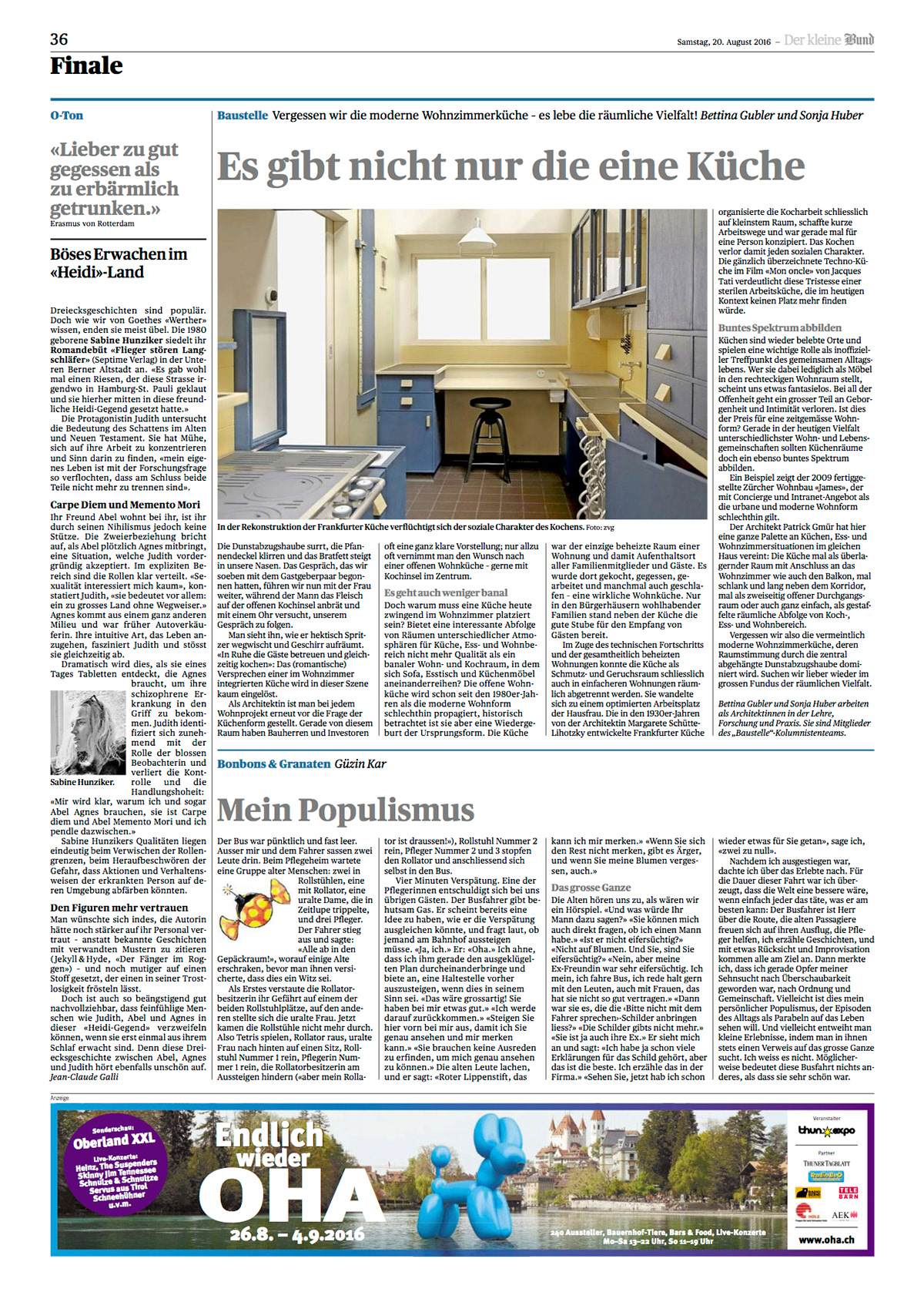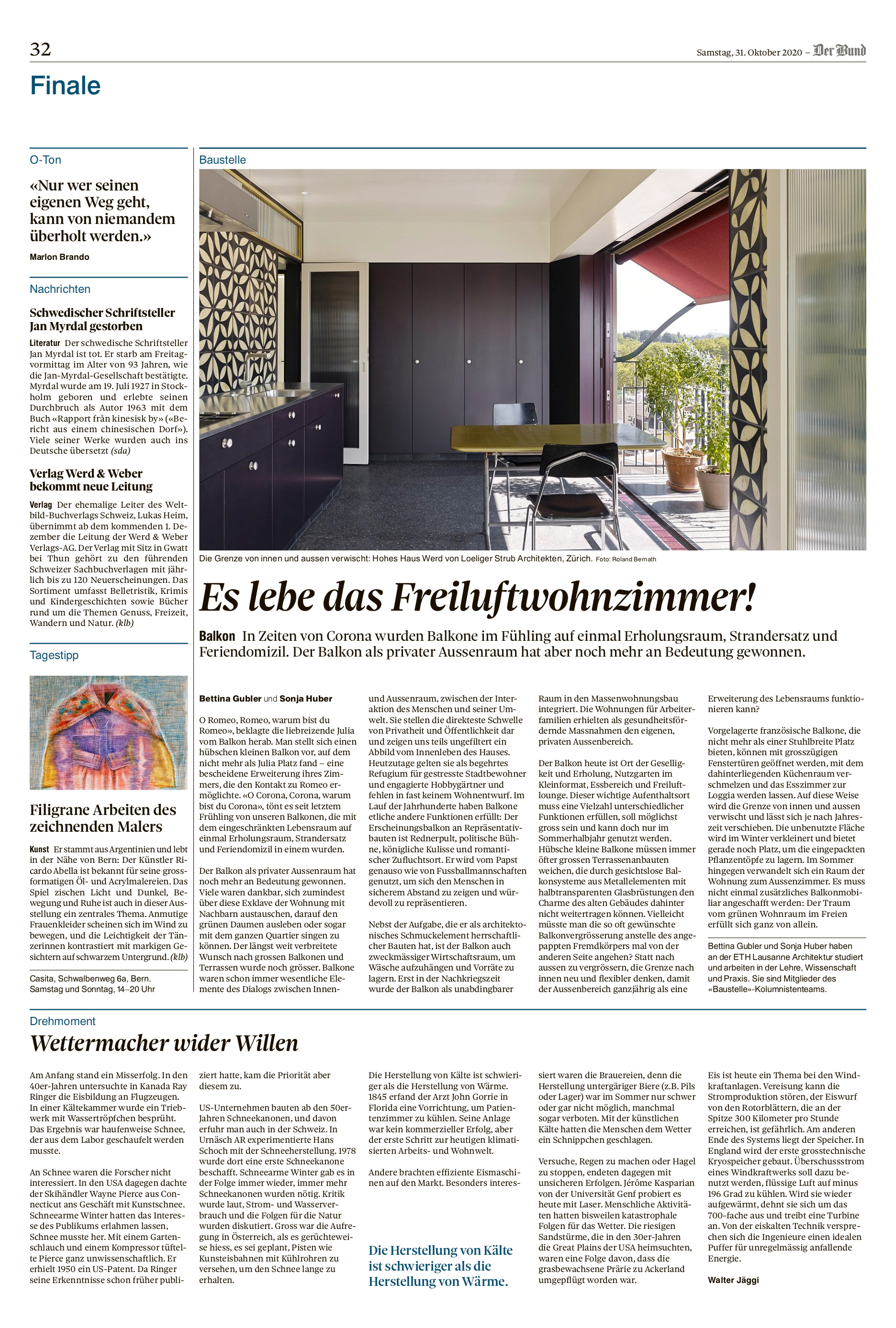 In der Tageszeitung "der Bund" erscheint monatlich eine Baustellenkolumne. Die Mitglieder des Kolumnisten- und Kolumnistinnenteams schreiben im Turnus halbjährlich einen Beitrag zu einem selbst gewählten Thema.